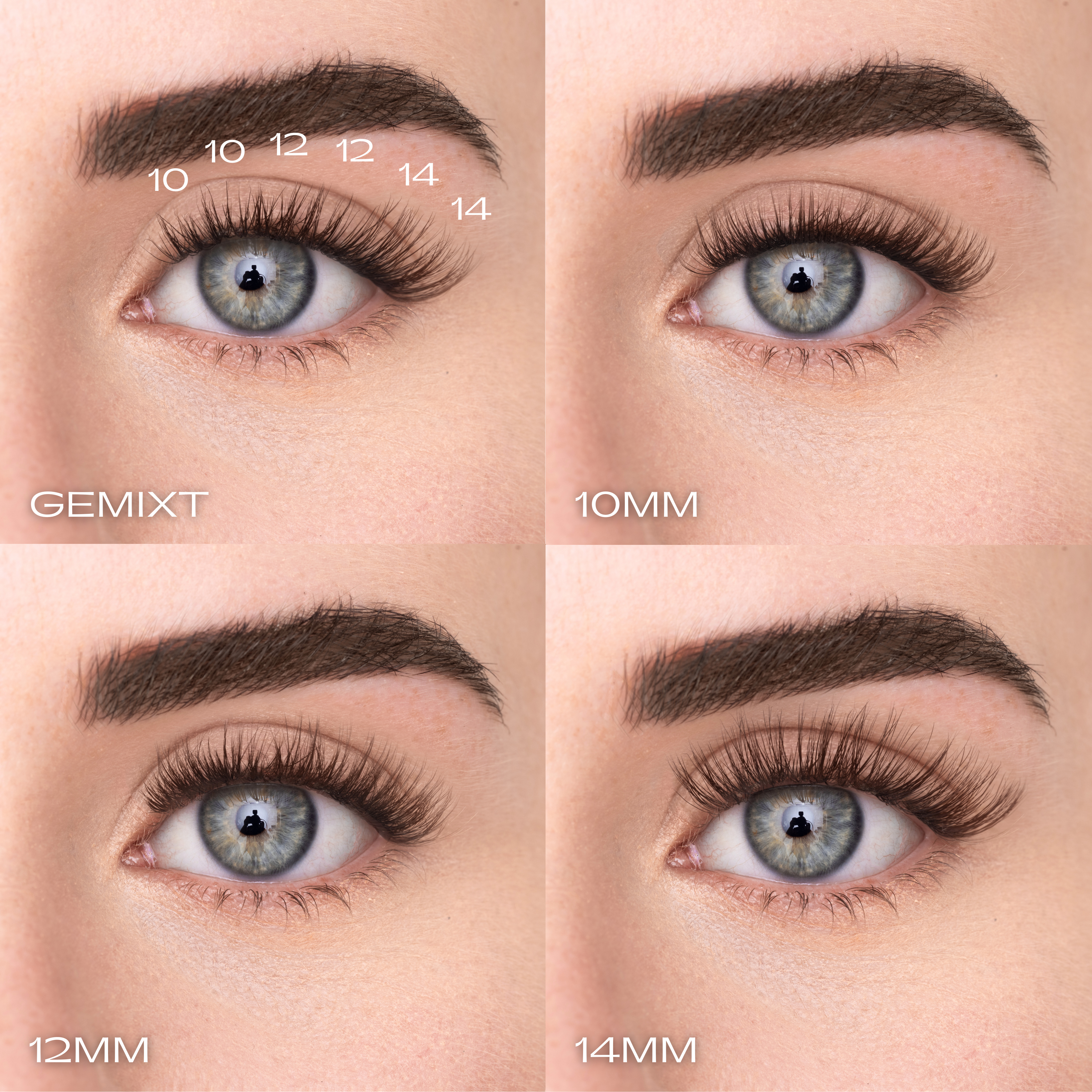 Het wimperdoosje bevat 3 rijen met elk een andere wimperlengte: 10, 12, 14mm. Op die manier kun je helemaal je eigen lash look creëeren. Ga voor de klassieke cat eye of behoud een gelijkmatige lengte voor een alledaags gebruik.
