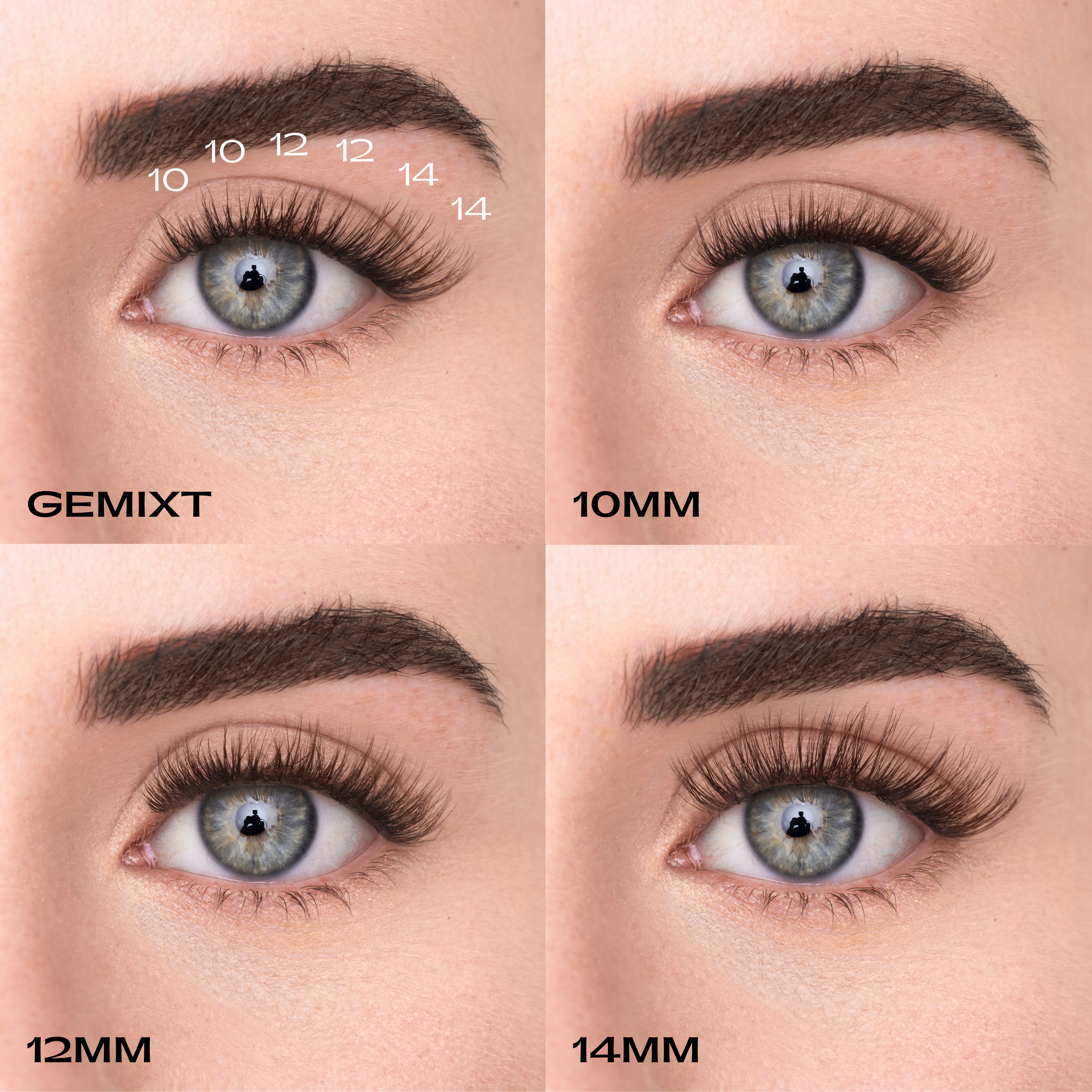 Het wimperdoosje bevat 3 rijen met elk een andere wimperlengte: 10, 12, 14mm. Op die manier kun je helemaal je eigen lash look creëeren. Ga voor de klassieke cat eye of behoud een gelijkmatige lengte voor een alledaags gebruik.