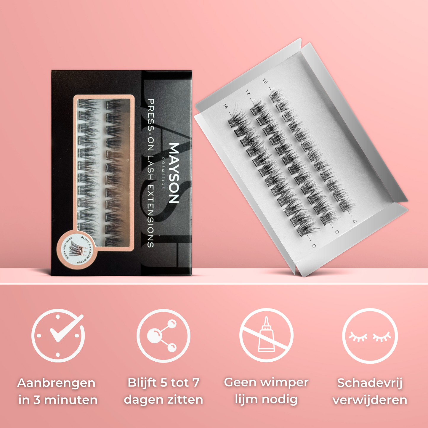Ja, onze Press-on Lashes zijn 100% waterproof. Je zou hier dus ook mee kunnen zwemmen en douchen. Wel raden wij het aan om de lashes de eerste 12 uur niet nat te maken zodat je de voorgelijmde wimperrand even de tijd geeft om zich goed te hechten.